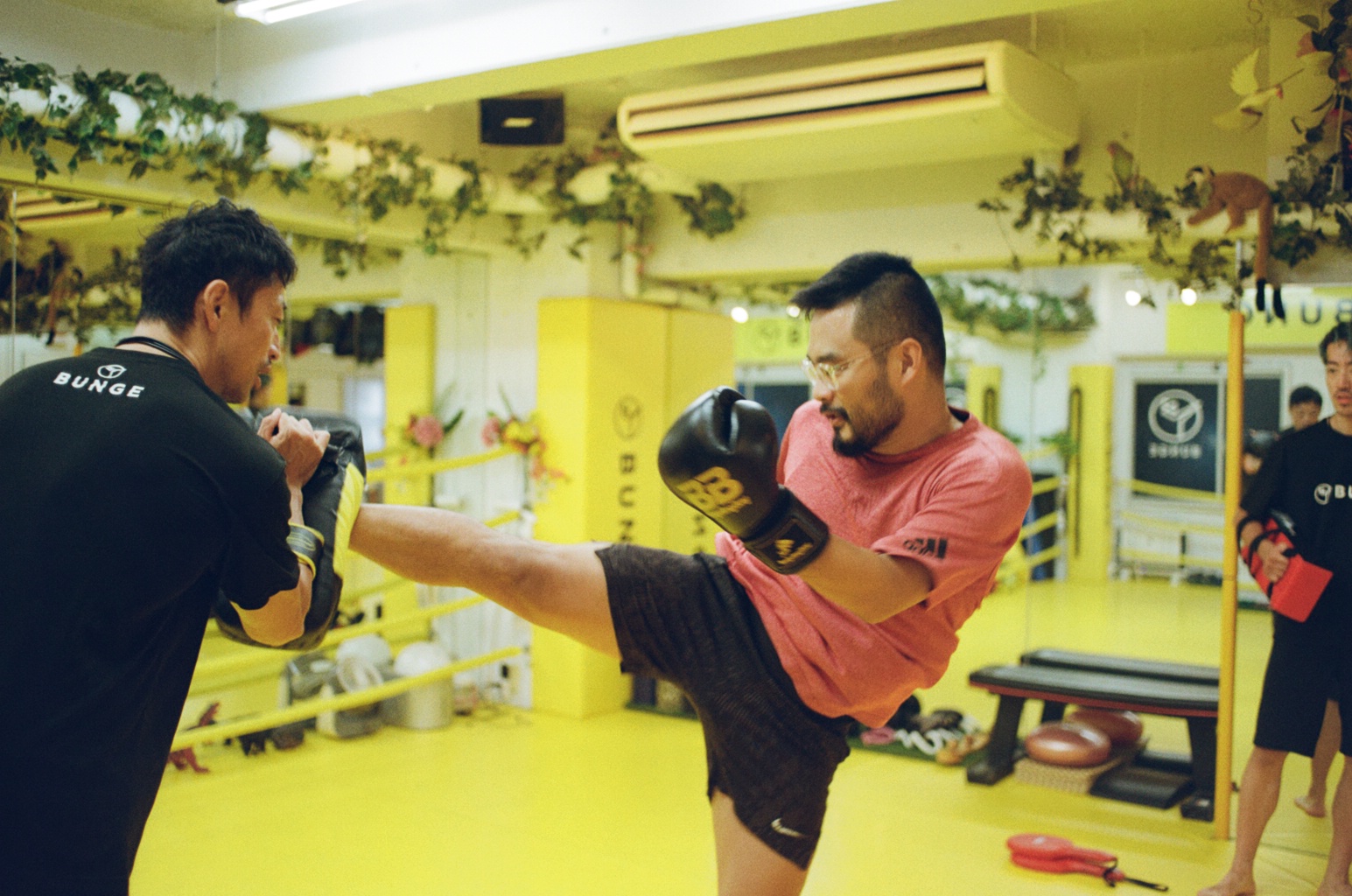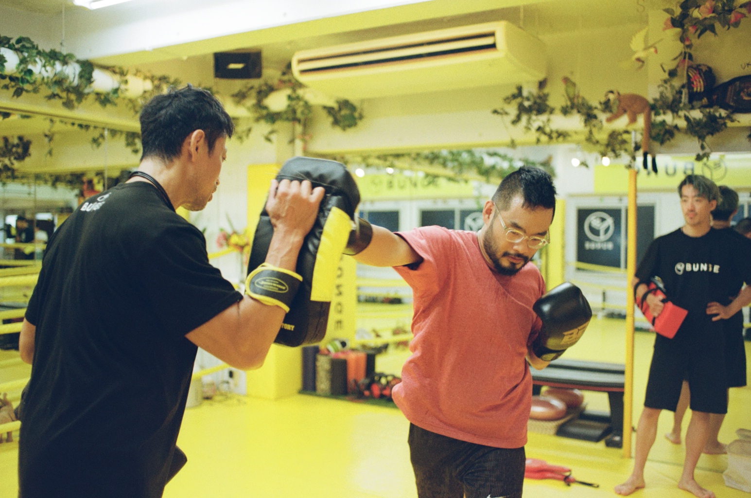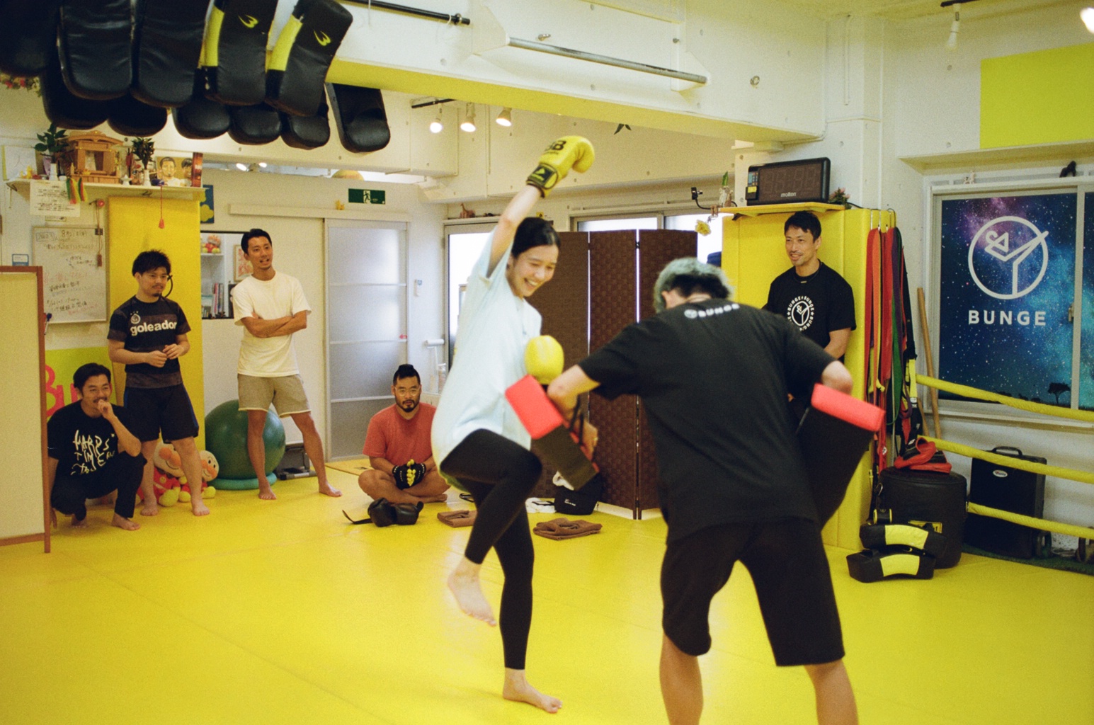 そんな阿部さんと行なった“ゴキゲン”な朝活は「キックボクシング」。阿部さんもharu.さんも初めてだというキックボクシングを選んだのは阿部さんだ。「ずっとやってみたかった」と話す阿部さんの横で少し不安そうな顔を浮かべるharu.さん。恵比寿にある「キックボクシングフィットネスジム・バンゲ」で、今回の朝活が始まった。