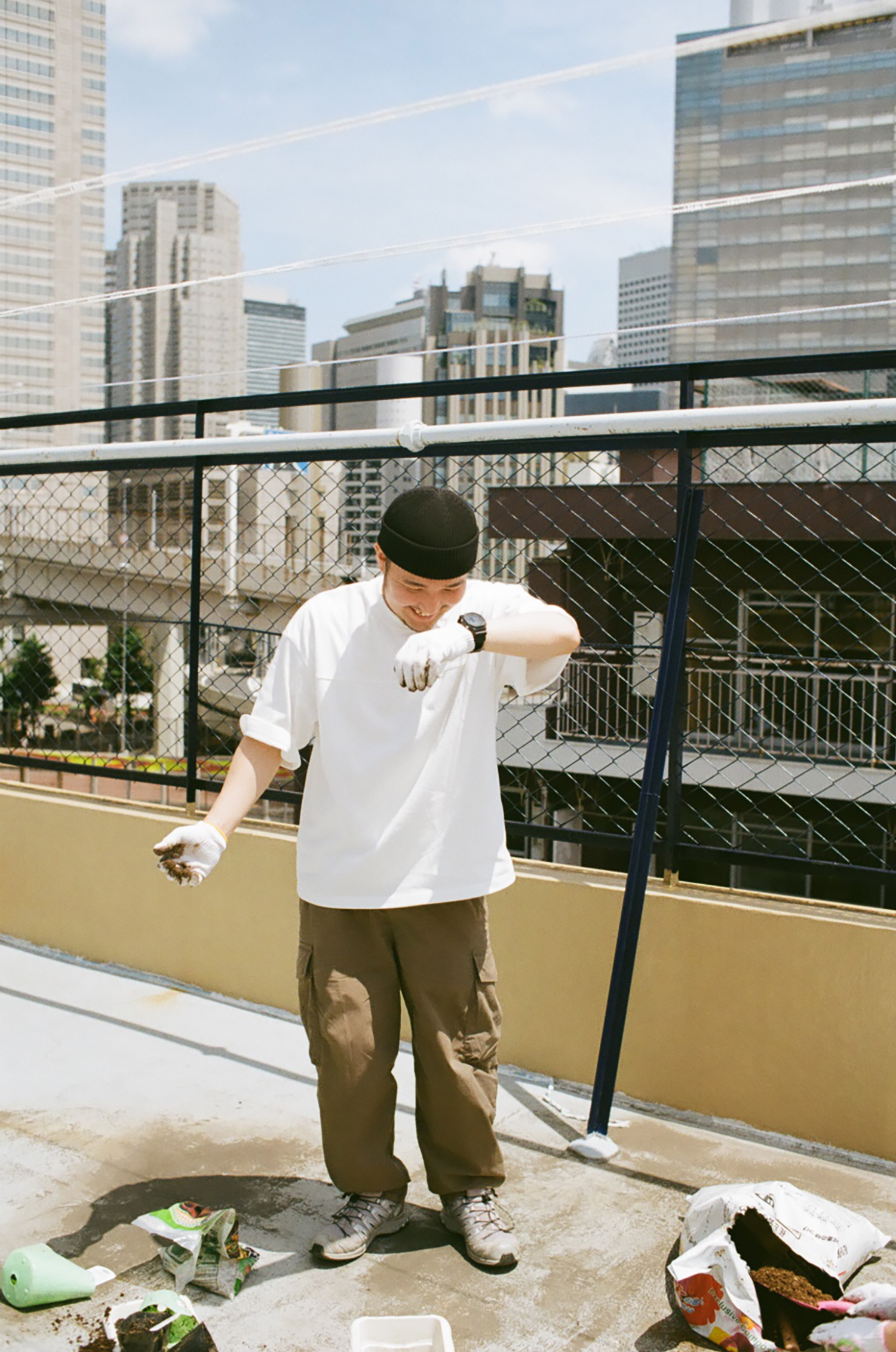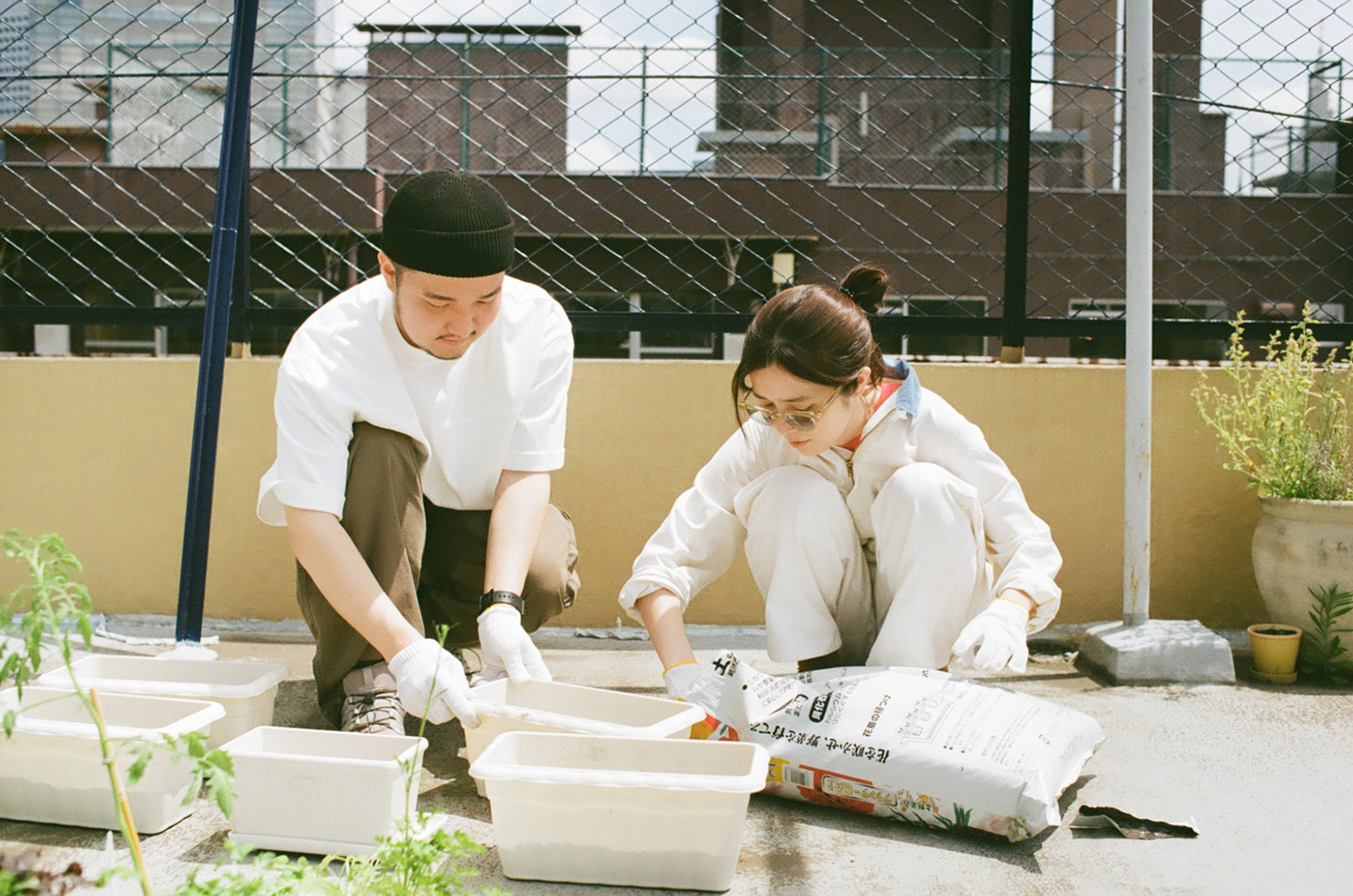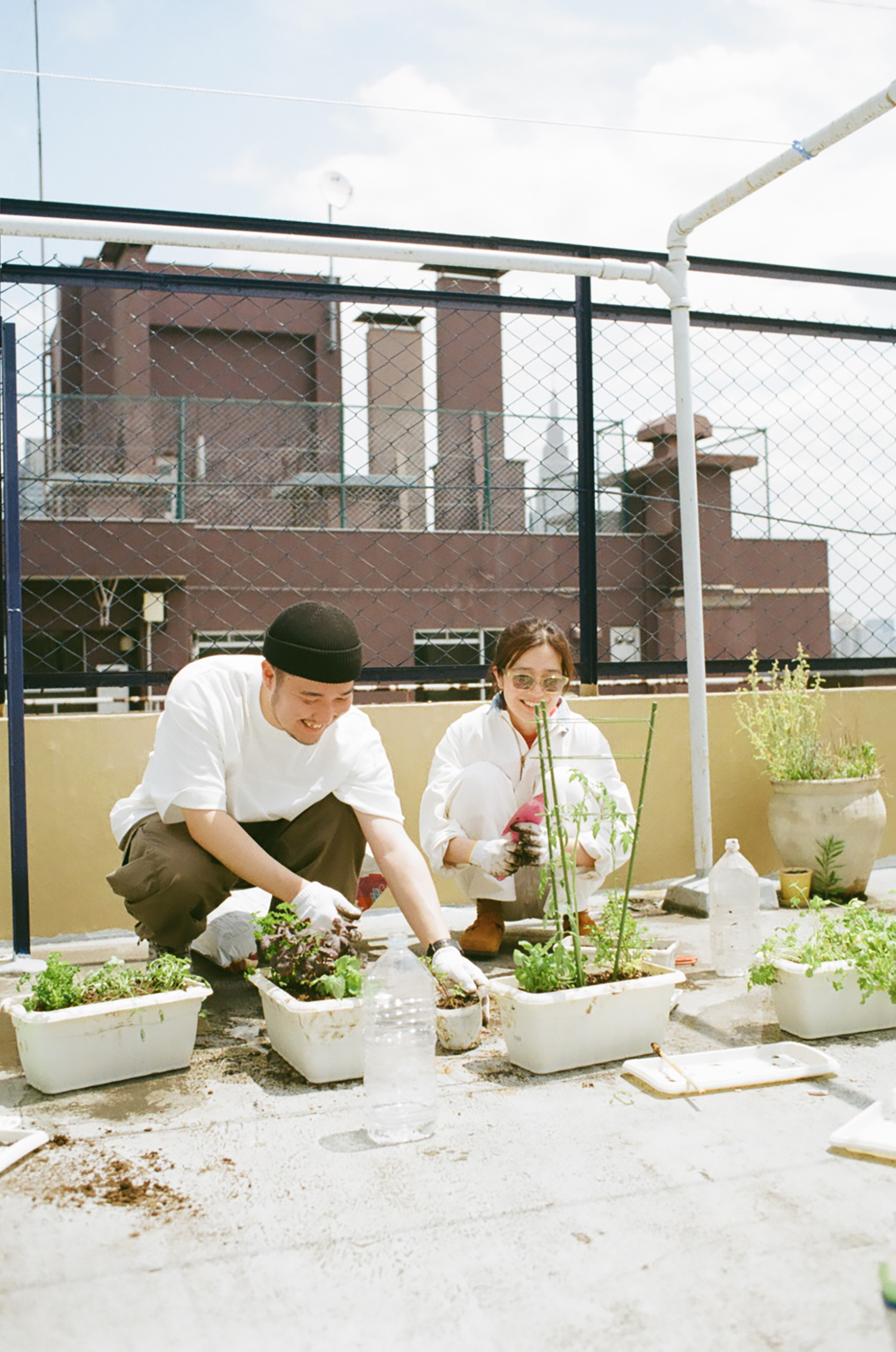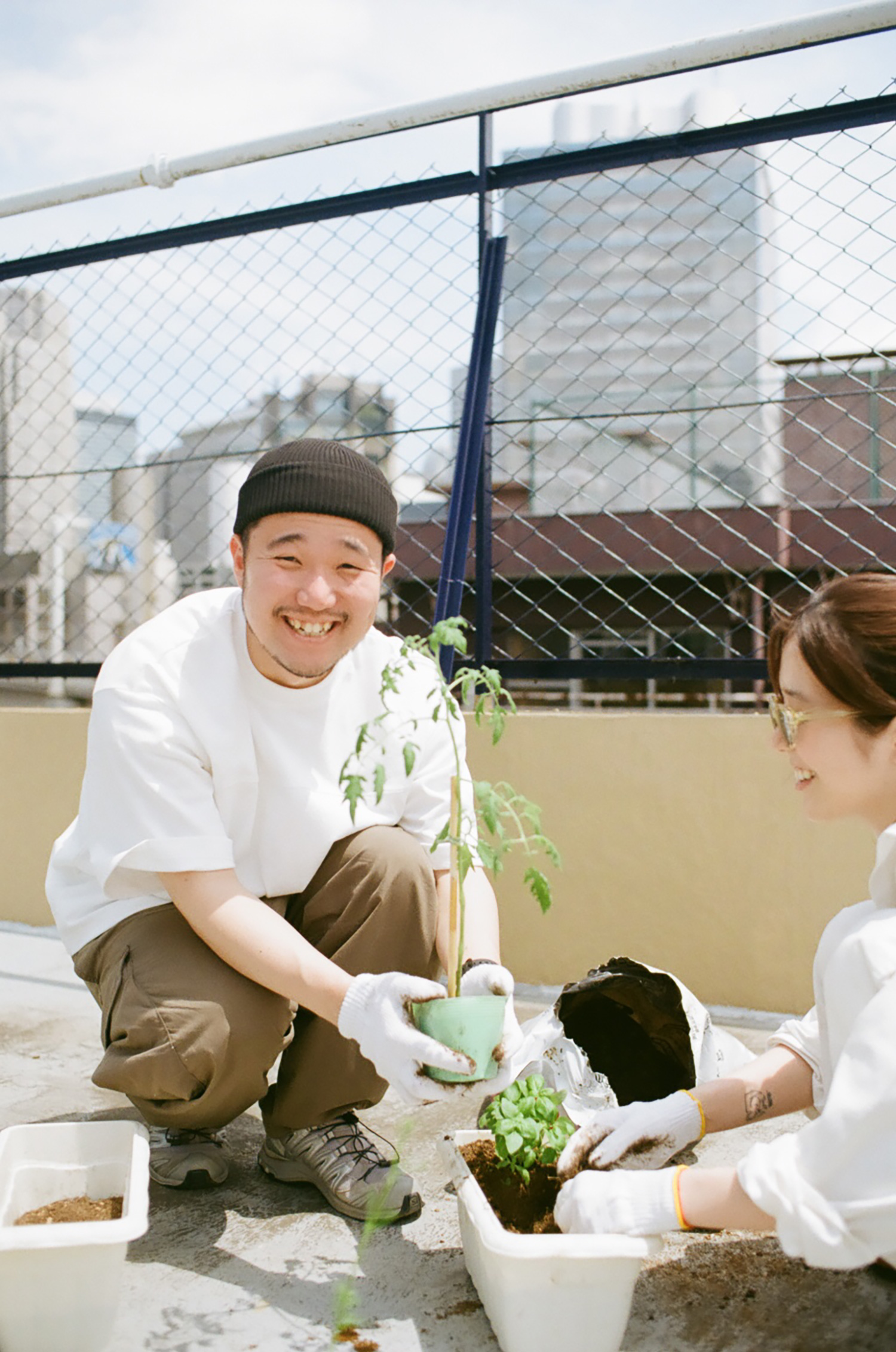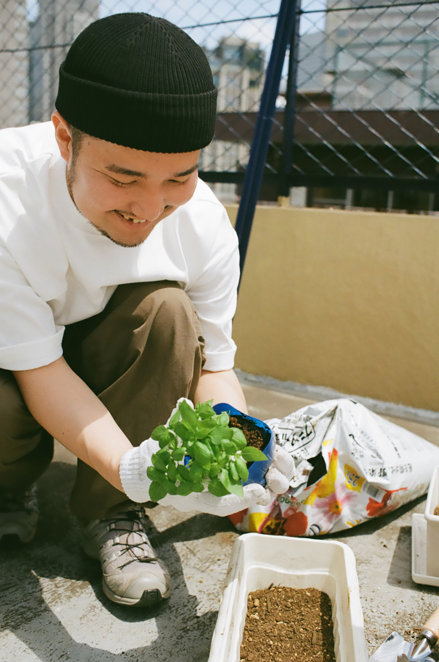 『月曜、朝のさかだち』第11回目はラッパー、作詞家、詩人のmaco maretsさんをゲストにお迎えし、プランター菜園を行いました。トマトやバジル、紫蘇など、家庭でも育てやすい苗をプランターに植え付け。苗を植え付ける担当と土を入れる担当に分かれ協力しながらプランター菜園を完成させていきました。朝活を終えた二人は、出会いからの8年間を振り返りながら、ラップを始めたきっかけや、ヒップホップに根付くマッチョなイメージとの向き合い方、年齢を重ねるごとに感じてきた自分のルーツについてなどお話しいただきました。