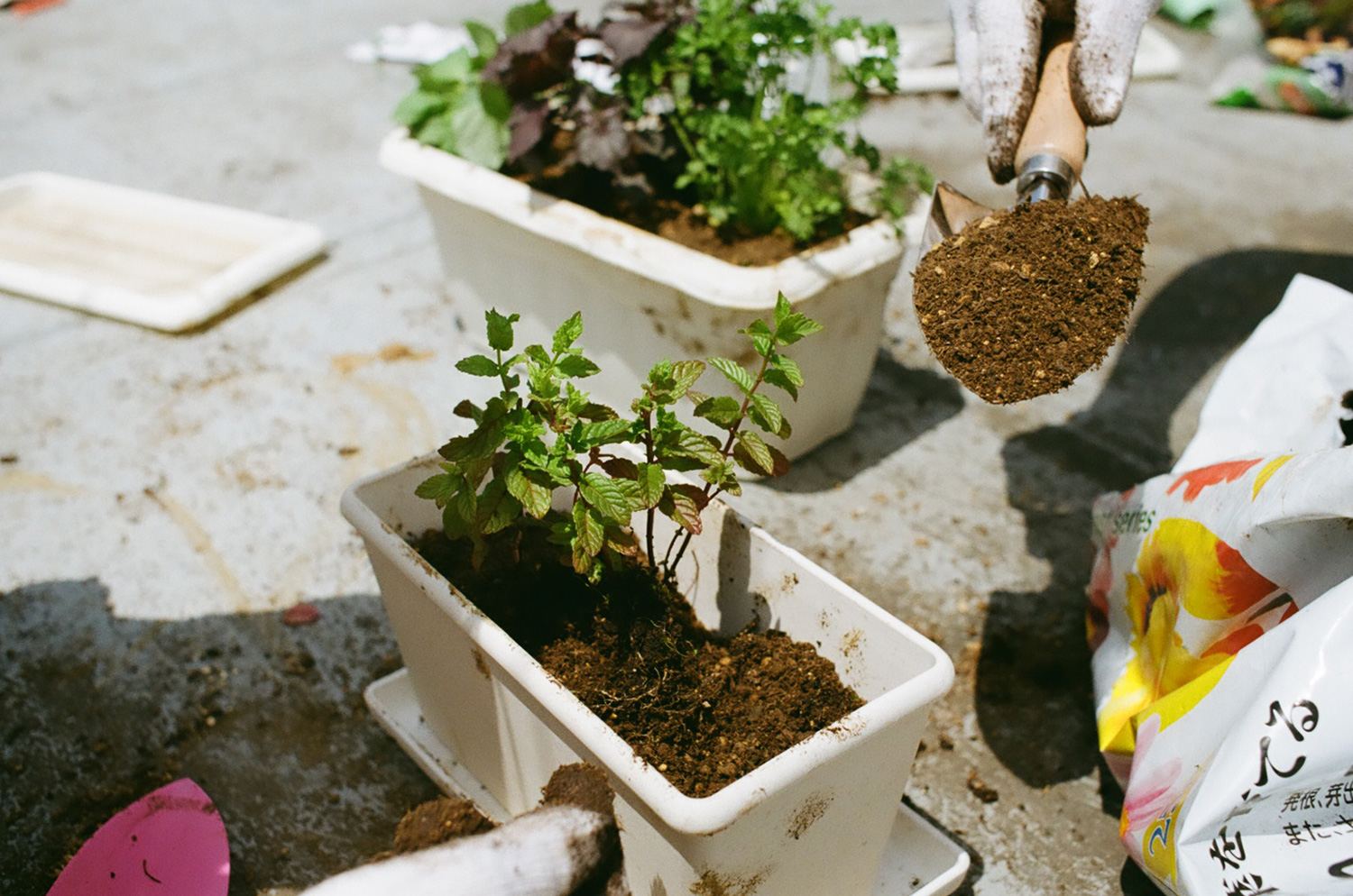 maco marets_楽しかったですよ。プランターに苗を移し替えるっていう作業なんだけど、パクチー、紫蘇、パセリ、トマト、バジル…。