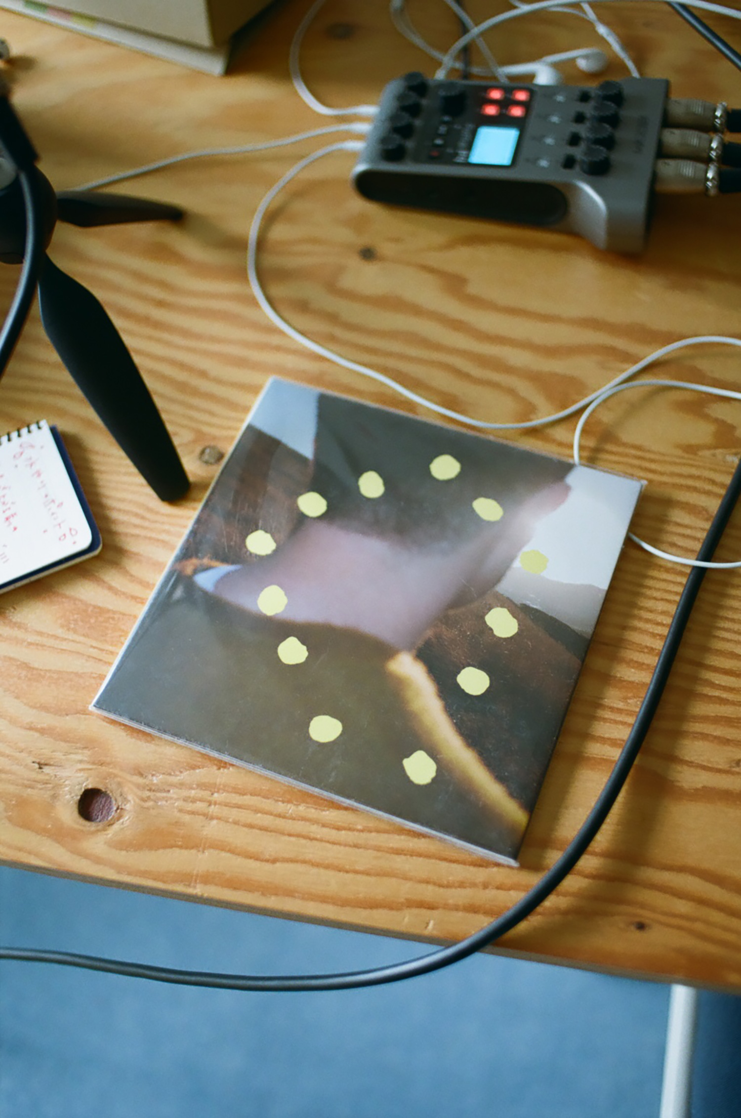 haru._確かにそれあるよね。ブアくんが誰にも頼ってない感じを感じたの。なんというか、受け入れる過程を作品のなかでやってるというか。自分の核となるものはわかってるから、あとは私たちが一緒に作ったもので、きっと満足いくものができるんだろうなっていうか、そこの余白をすごく感じたから、入っていきやすかった。ぜひアルバムも聴いてほしいし、ジャケットも見てほしいんですけど、ジャケットには黄色いインクの点が12粒乗っているんです。その点は、私たちが泊まっていた、范冰冰(ファンビンビン)*④っていう治樹くんがやってる宿があるんですけど、そこのキッチンにあった時計からインスピレーションを受けているんです。数字が並んでる文字盤があって、その形をトレースしていて。