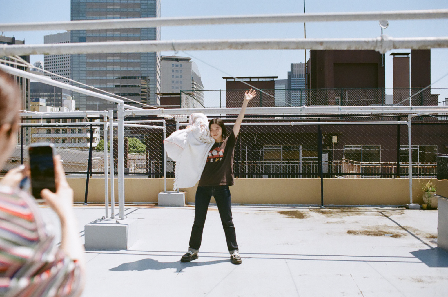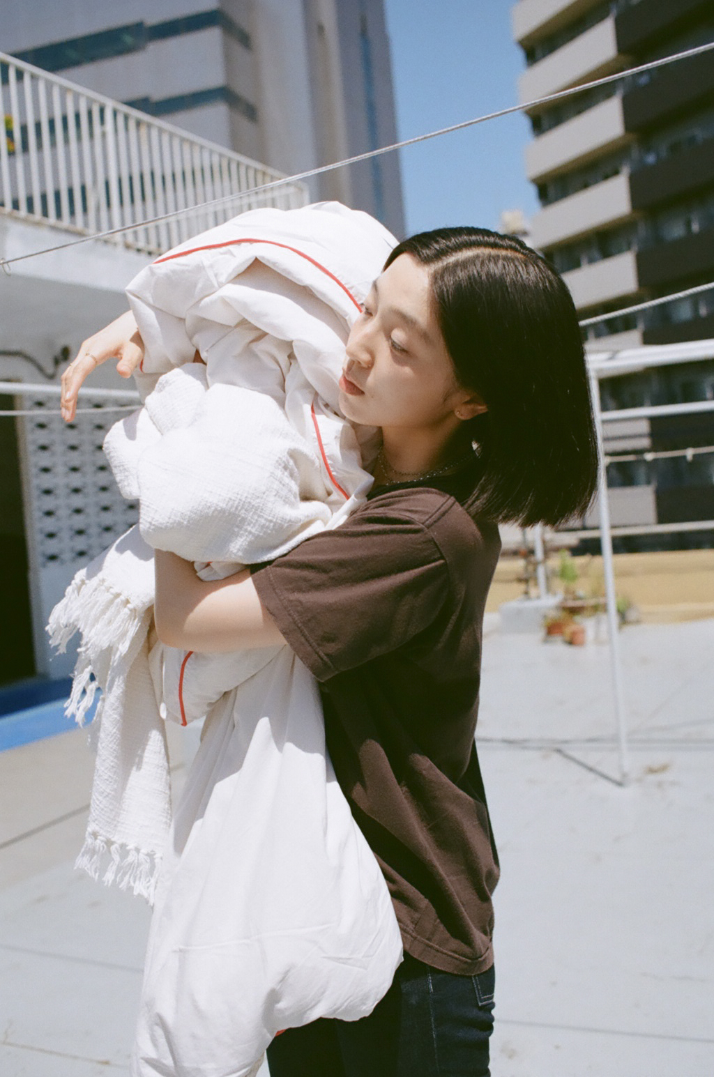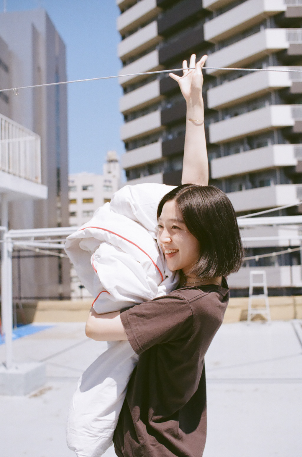 小谷_実は今この収録をしているHUGのオフィスが入っている場所に7年前ぐらいまで住んでいたんですよ。ここにharu.がオフィスを構えるときにSNSで写真を見て、すごく見覚えがある部屋だと思って聞いてみたら、本当に私が住んでいた場所だったんです。なのでこの場所は私にとってすごく思い入れがある。ここには屋上があって、実際に住んでいたときにその屋上に布団を干していたので、もう一回それをやりたいなと思って提案しました。