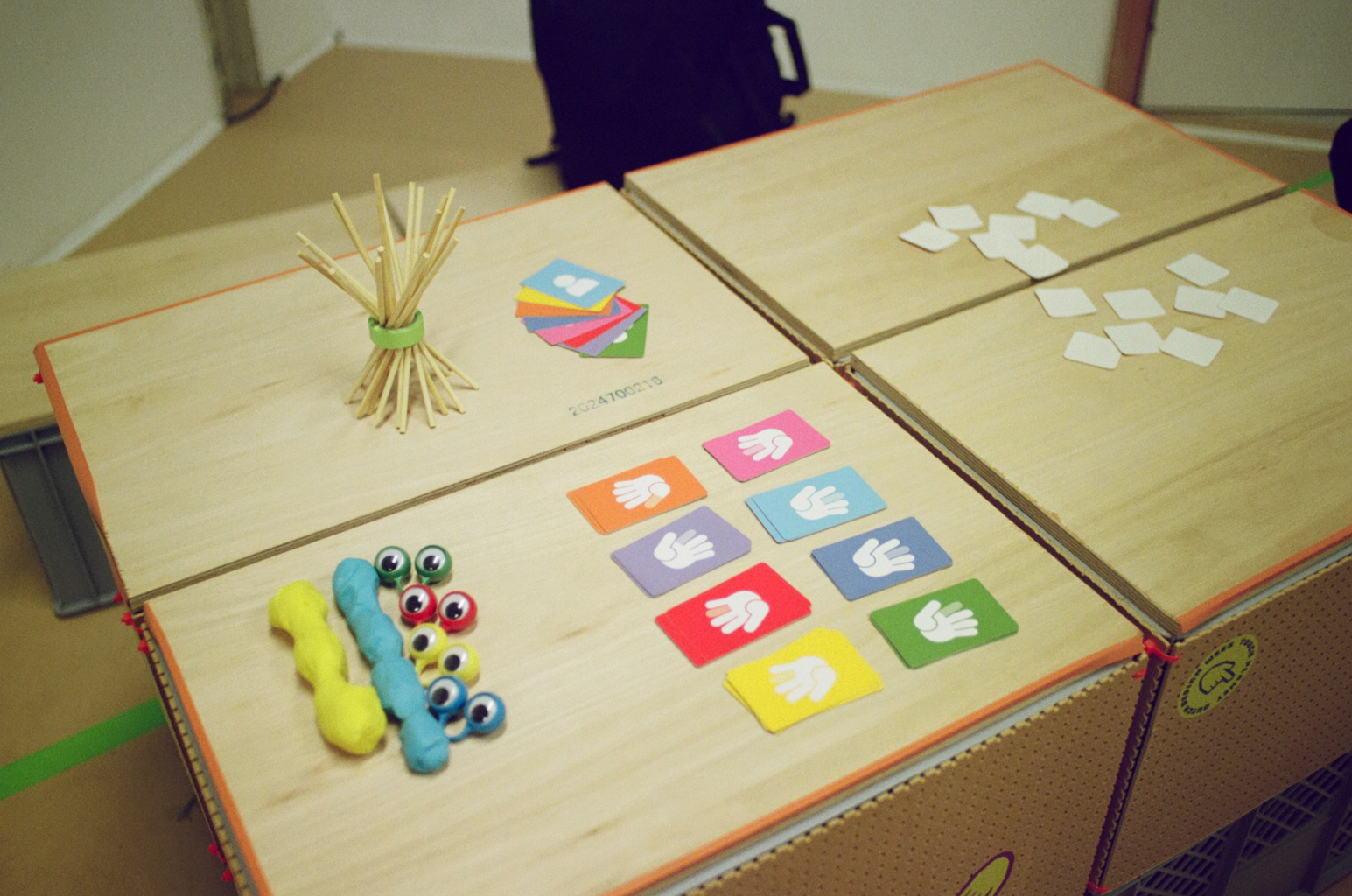 和田_盲ろう*③の田畑はやとさん*④という方が触覚を通して世界を理解していて、その世界の理解の仕方を使って一緒に遊んでいるうちにできたいろんなゲームを、来てくれた人たちと一緒に遊ぶということをしていました。ろう者の両親のもとで育ち、私自身も手話と日本語が第一言語だったのもあるんですけど、触覚の言語を知ったときに、これまでとはまた違う景色が見えてきたんです。実際に展示に来てくれた人たちも、新しい感覚の扉を開いて帰っていました。 田畑さんが美しいと思ったことや、田畑さんの記憶の中にあるものがかたちになっていくことで、私たちがこれまで見えていなかったり、意識に上がっていなかったものが、存在するようになったりして、それがすごく面白いなと思いました。