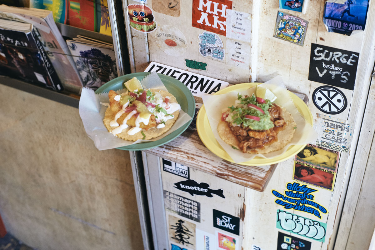 「BAJA」の人気メニュー、タコス。店主お手製のタルタルソースやアボカドディップ“ワカモレ”はフレッシュかつ美味。テイクアウトも可能。