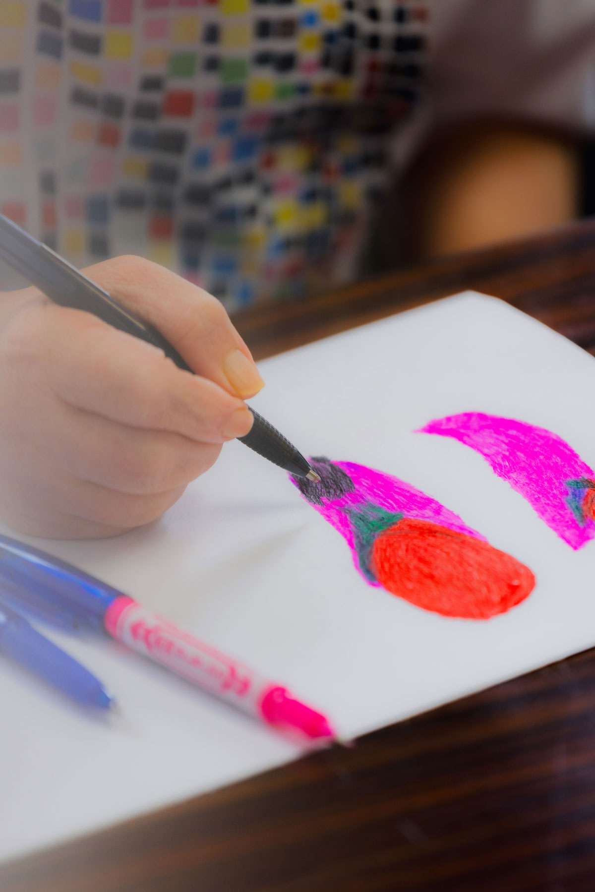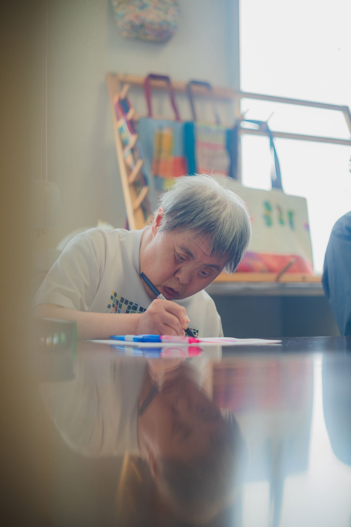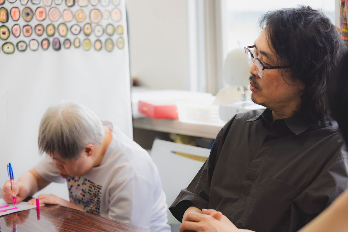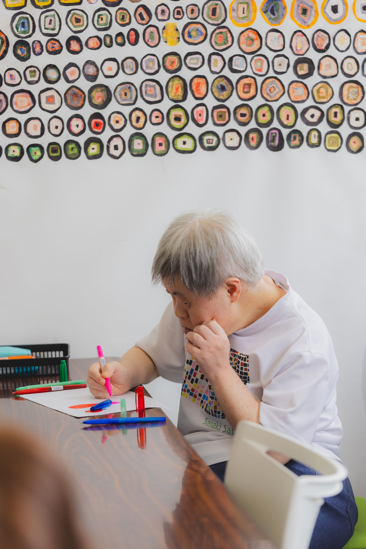 早苗さんは「るんびにい」の座る位置がいつも決まっている。到着したら、座って、ひたすら集中して絵を描き続ける。それが彼女のルーティンだ。